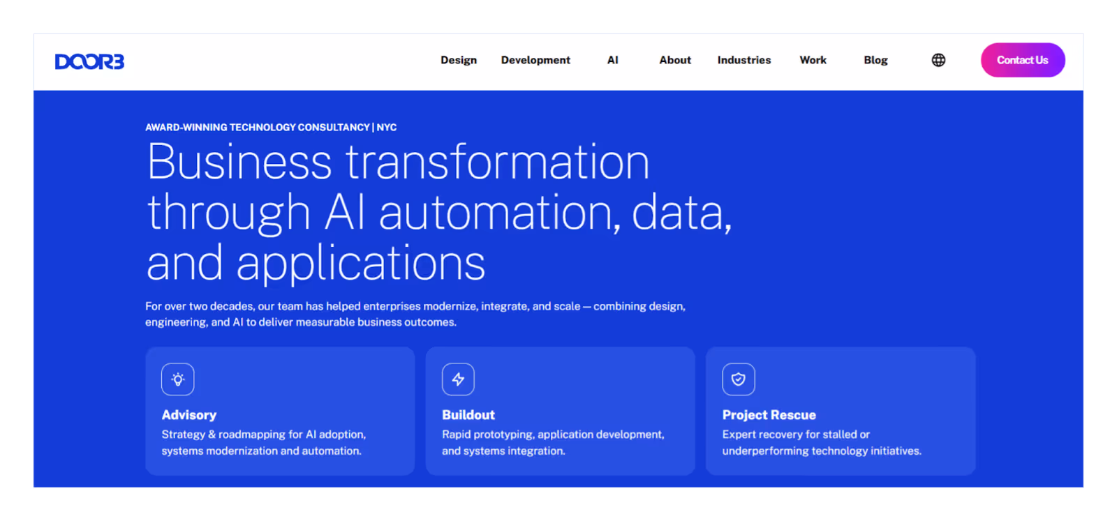 DOOR3 builds backend systems as part of broader digital product initiatives, supporting enterprise applications, internal platforms, and data-driven tools. Their work emphasizes system architecture, security, and reliable integrations with existing enterprise infrastructure.