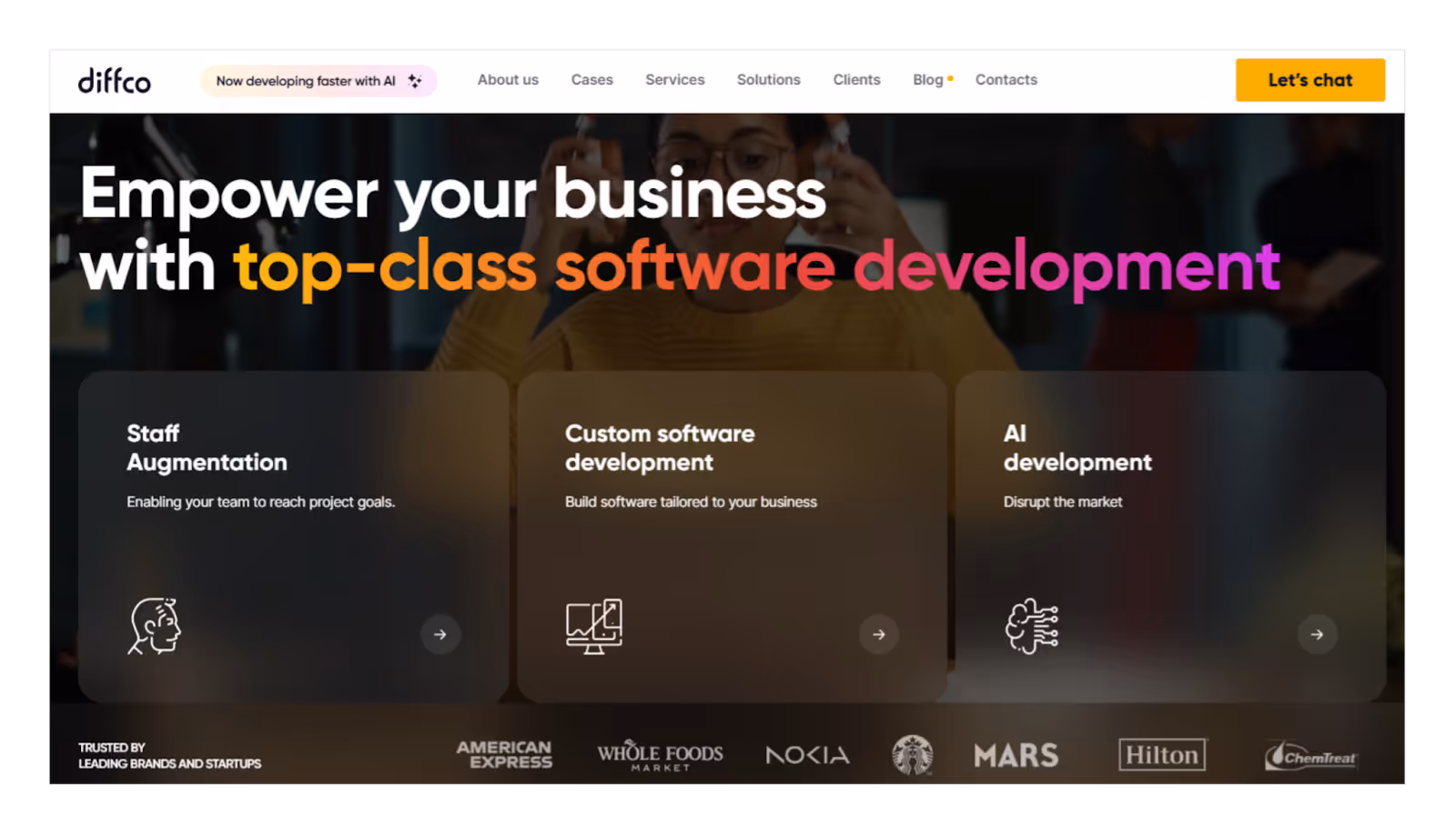 Diffco is a U.S.-based custom software development company that partners with startups and enterprises to design and build advanced digital products. Their expertise spans AI, machine learning, and cloud-based architectures, allowing them to create software that’s secure, scalable, and ready for real-world performance.
