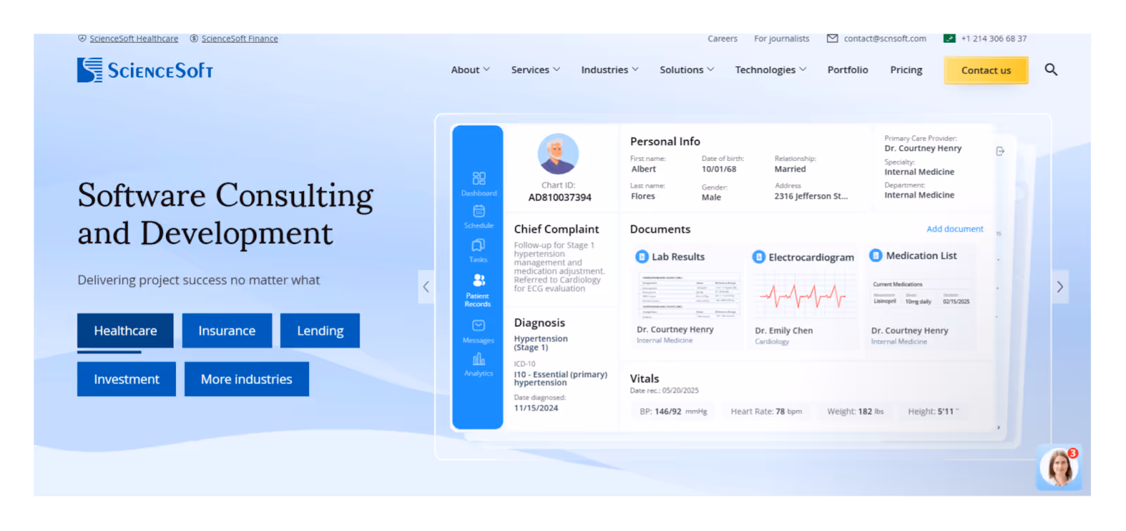 ScienceSoft is a long-established enterprise software development company specializing in CRM systems, data platforms, ERP modules, cybersecurity, and large-scale digital transformation projects. They support organizations across healthcare, banking, retail, and manufacturing, offering full-cycle engineering from architecture design to long-term maintenance.