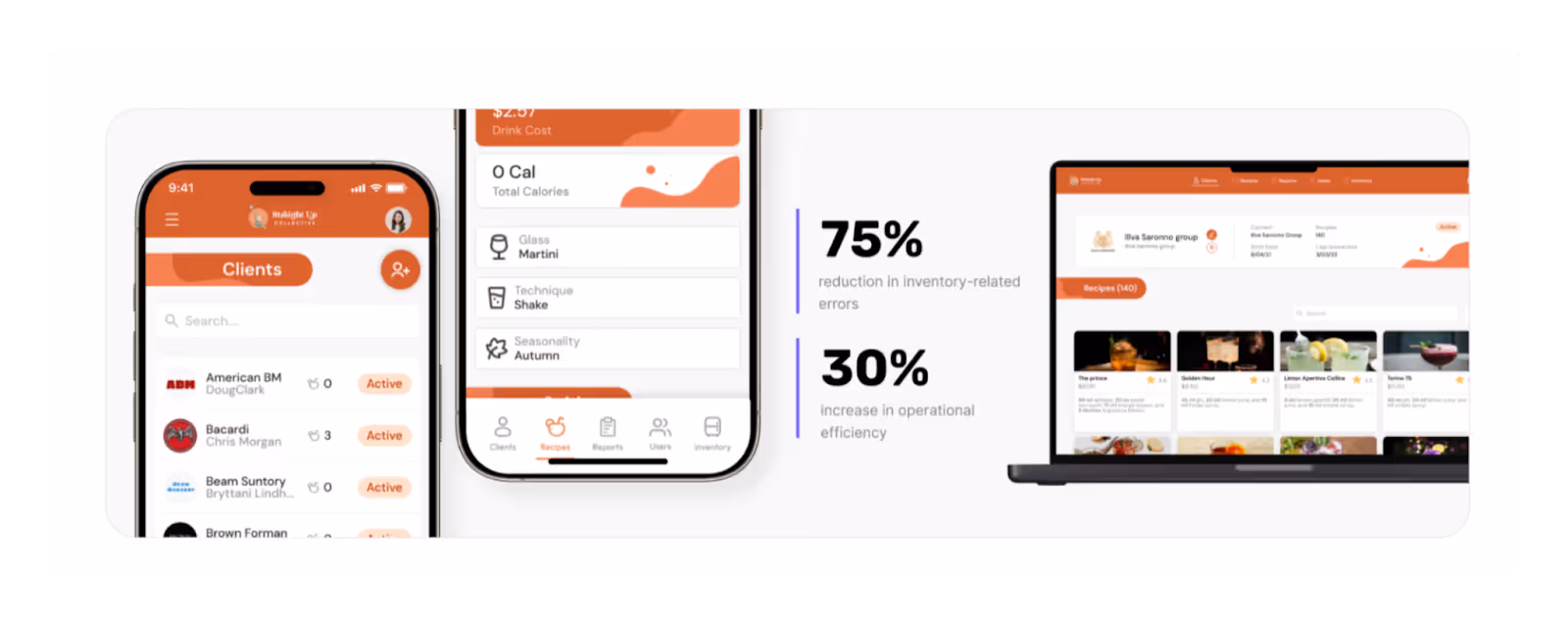 An internal operations app designed to standardize drink recipes across 100+ hospitality locations. The app provides bartenders and managers with instant access to accurate recipes, portion calculations, and real-time updates.