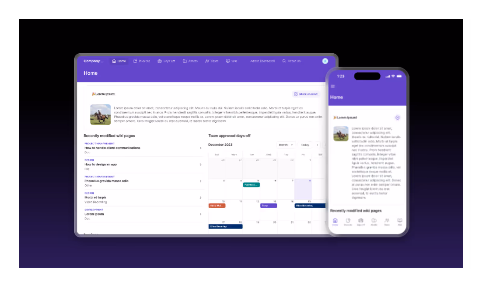 A centralized internal hub for tracking documents, assets, requests, and company-wide updates.