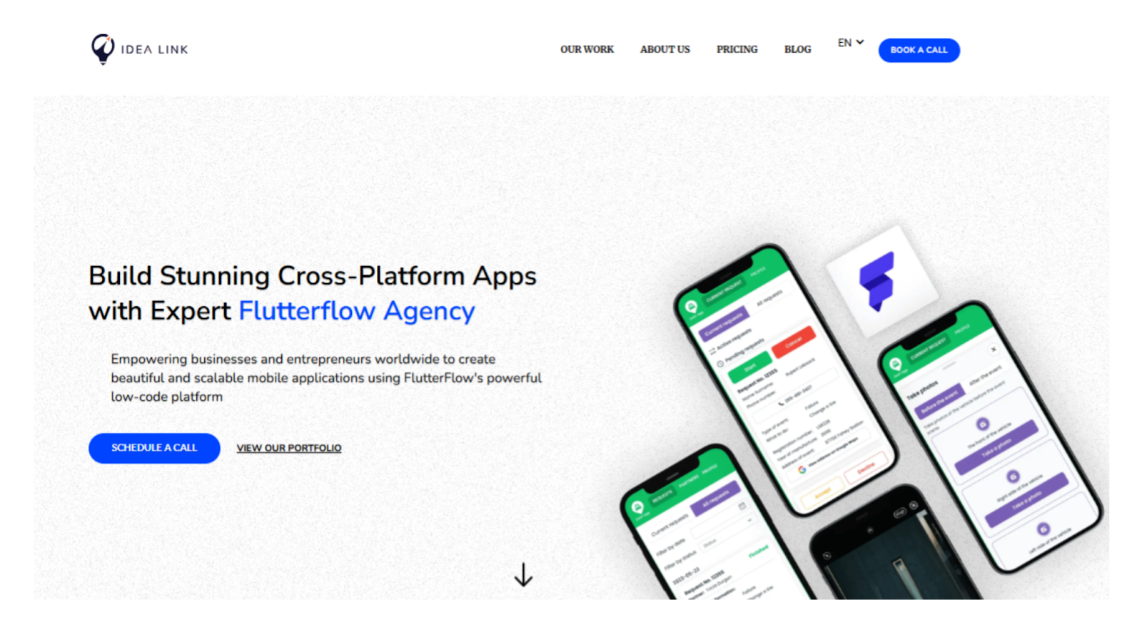 Their FlutterFlow division focuses on creating responsive, secure, and high-performing applications that integrate seamlessly with Firebase, Supabase, and Google Cloud. Bacancy’s technical strength and large engineering team make them a great choice for businesses that need enterprise-grade builds, complex integrations, or long-term maintenance support.