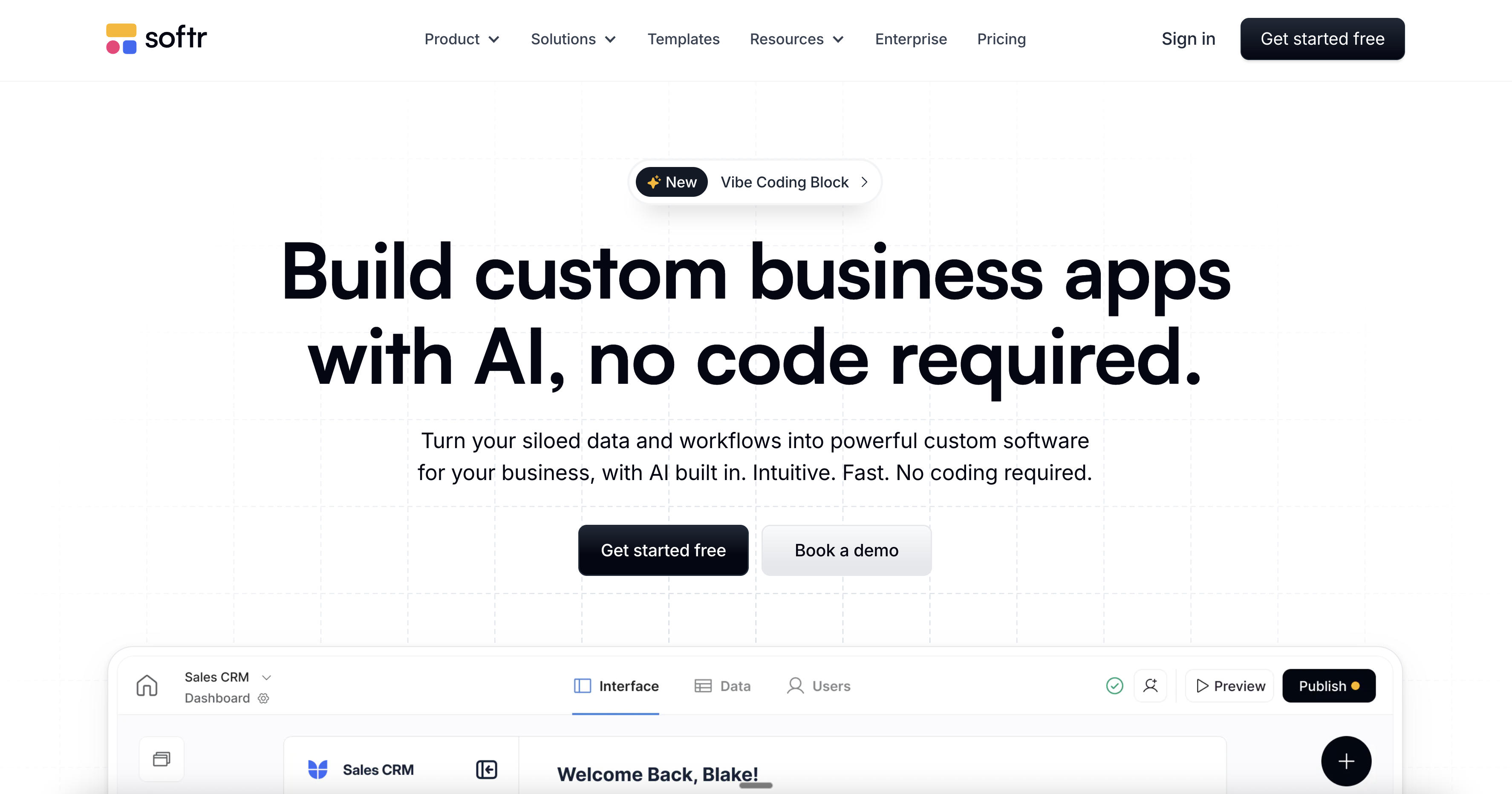 Softr is an AI platform that enables non-technical teams to build business software — including apps, databases, workflow automations, and forms — without code.